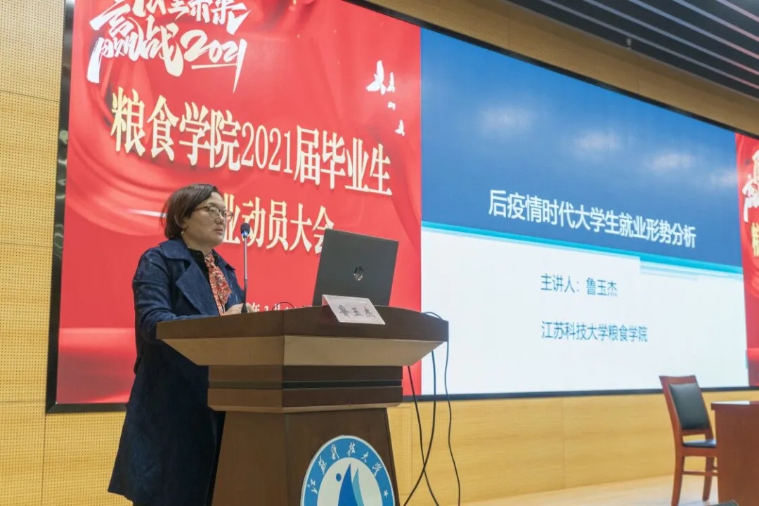 91网站 院长鲁玉杰面向2021届全体毕业班学生做主题为《后疫情时代大学生就业形势分析》的就业动员讲话。鲁院长通过大量数据和事实对高校毕业生总体就业形势进行分析,指出一系列导致当前大学生就业形势严峻的主要原因。针对疫情影响下当前严峻的就业形势,鲁院长表示当前毕业生容易出现等、靠、慢就业等问题。鲁院长指出,面对疫情,同学们要认清就业形势,先就业再择业,积极调整好就业心态,并结合生动具体的案例,提醒同学们要提前做好就业准备,抓住就业的机会。就后疫情形势下粮食行业发展而言,鲁院长指出当前许多地方粮库粮油储藏专业人才几近为零,急需大量人才引进。同时她表示,粮食不是朝阳产业,也不是网红行业,而是国家长期以来的战略问题,是永远的国基产业。鲁院长鼓励大家要把握当前粮食行业人才缺口,提升自己就业核心能力,认清当前就业形势,主动找寻就业机会,在“在危机中育新机、于变局中开新局”。